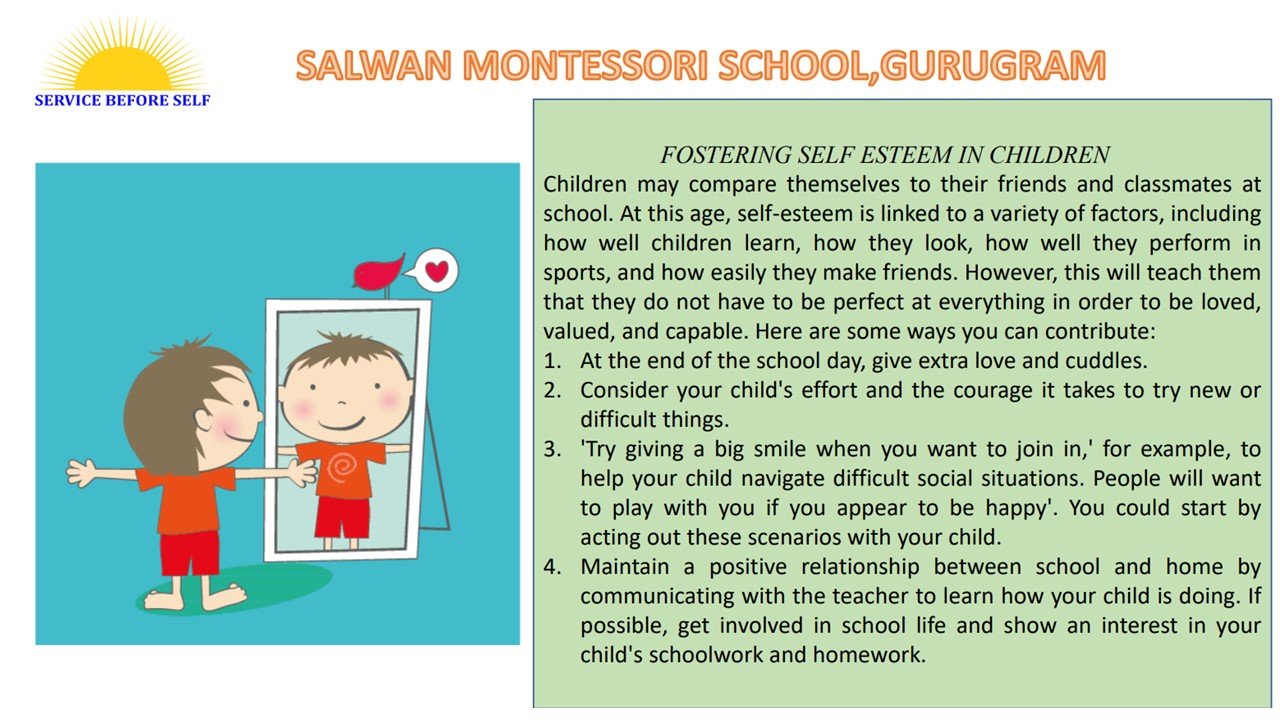 *Self-esteem refers to how much people value themselves and how significant they believe they are in their environment. So, we at Salwan Montessori School is organised the worksh